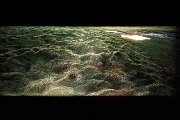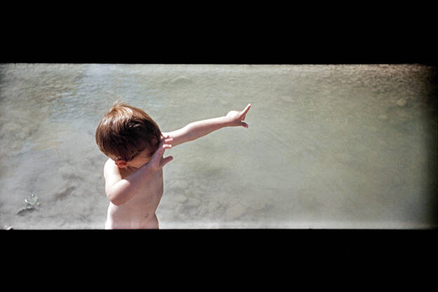 Landed témoigne de l’expérience nouvelle de la paternité. A l’orée du conte, il porte son regard sur l’univers primitif de la petite enfance, sur l’enfant comme un être de pulsions, faisant corps avec le paysage.