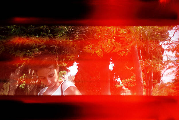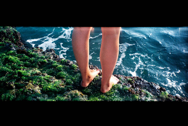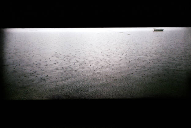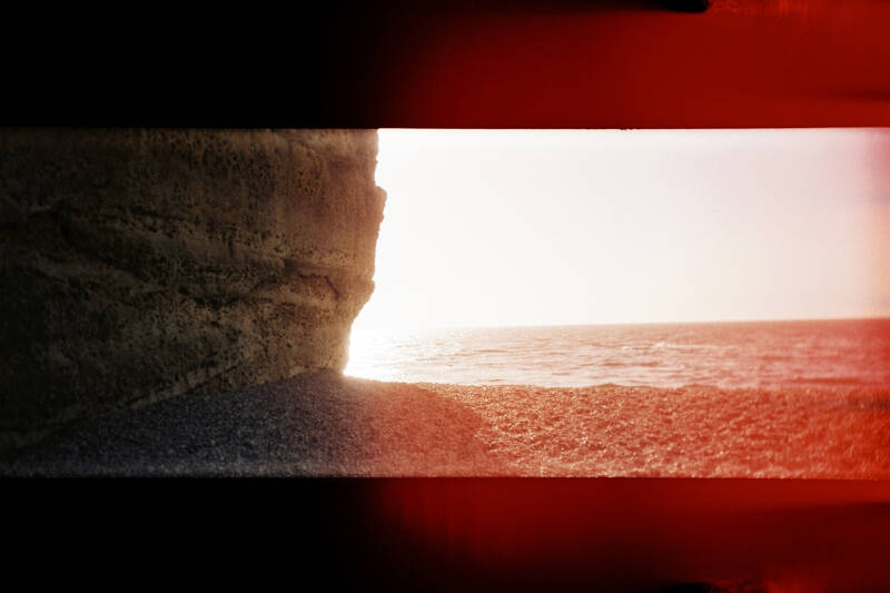 Rester dans cette temporalité de l’immédiateté, c’est aussi accepter l’horizon mal cadré lorsque la tempête est trop forte. Ces images granuleuses, qui s’ancrent dans la matière de la mémoire, légèrement tremblées, apparemment douces, sont aussi et parfois de faux calmes, comme la surface visiblement lisse de la mer qui, pourtant, n’est que trouées et mouvements ascendants, descendants : des heurts illustrés par ces brûlures ardentes aux rouges explosifs qui viennent parfois troubler et zébrer l’image. Des entrées de lumières imprévues qui disent aussi les accidents, les hasards, l'imprévu.
