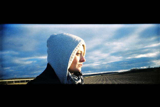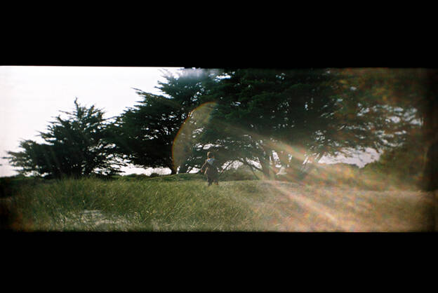 Composé de juxtapositions de séquences issues du quotidien, Le Journal photographique en Cinémascope se construit en chapitres, dans ce temps de latence propre à l’argentique, qui laisse un écart temporel entre le moment de la prise de vue et sa découverte en tant qu’image, et permet ainsi une scénarisation du réel. Les fictions s’élaborent à partir des territoires intimes, corps et paysages comme des lumières autonomes devenus la matière même de l’image. Bien qu’indépendants, s’enroulant chacun autour d’évènements qui composent des repères personnels importants – Les Temps calmes évoque la fin de l’enfance et la rencontre amoureuse, Le Voyage incertain ré-invente un long périple à l’étranger, Landed décrit le trouble de la découverte de la paternité, Le Conquérant et Le Nouveau monde dessinent les contours d’une vie familiale dans des paysages telluriques – ces différents chapitres qui se font suite chronologiquement forment ensemble une continuité temporelle et s’interpénètrent dans une fictionnalisation du vécu.